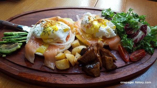 그래서 베이컨 베네딕트와 연어 베네딕트를 시켰다
