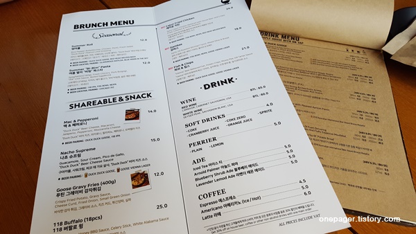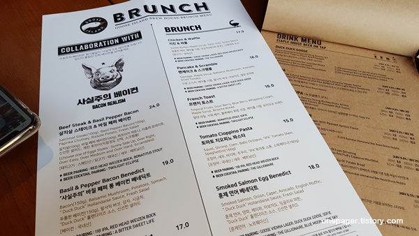점심에는 구스아일랜드 브런치 메뉴를 팔고 1층만 열려 있다