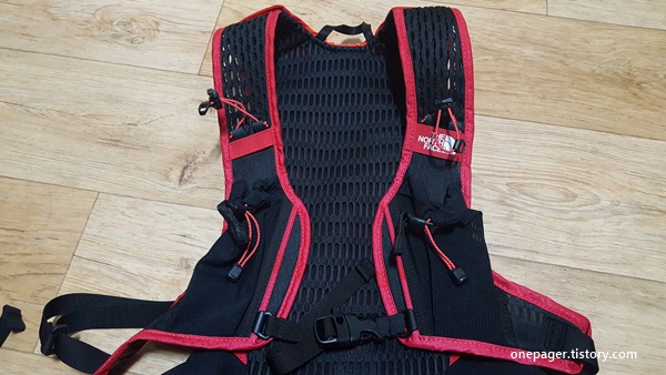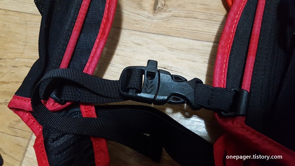앞에 어깨 끈 부분에도 물통을 두 개 수납할 수 있다