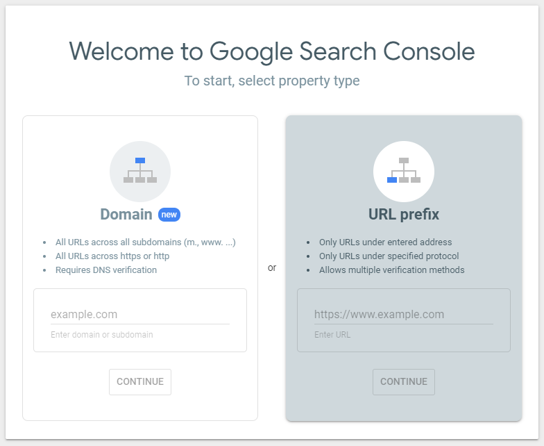 3. 별도로 등록한 개인 도메인이라면 왼쪽을 선택, 개인 도메인과 연결되지 않은 블로그나 사이트라면 오른쪽 URL prefix를 선택합니다