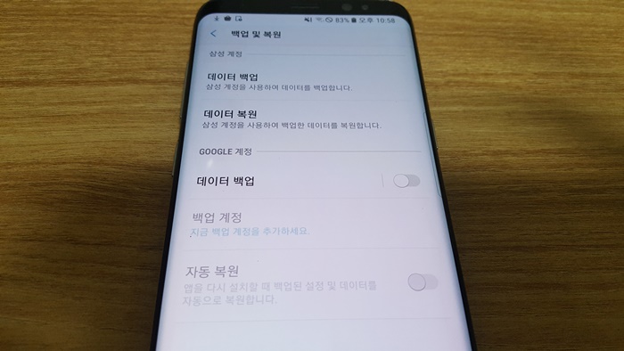 데이터 백업, 자동복원을 모두 비활성화 시킨다