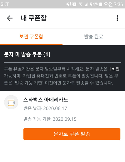 이렇게 스타벅스 커피 쿠폰을 발송할 수 있다