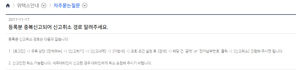 위택스에 동일한 신고내용이 하나 더 생겼습니다.;;