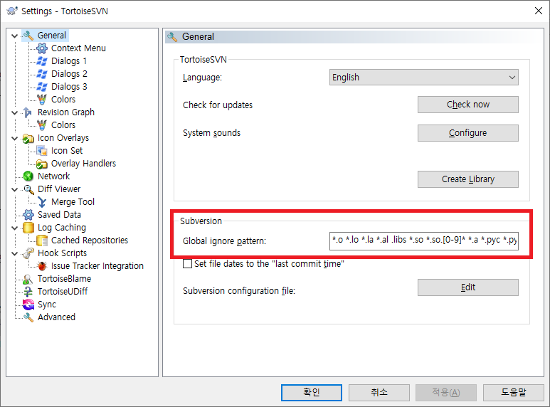 많이들 사용하는 TortoiseSVN 기준으로 Ignore pattern을 설정해 보자