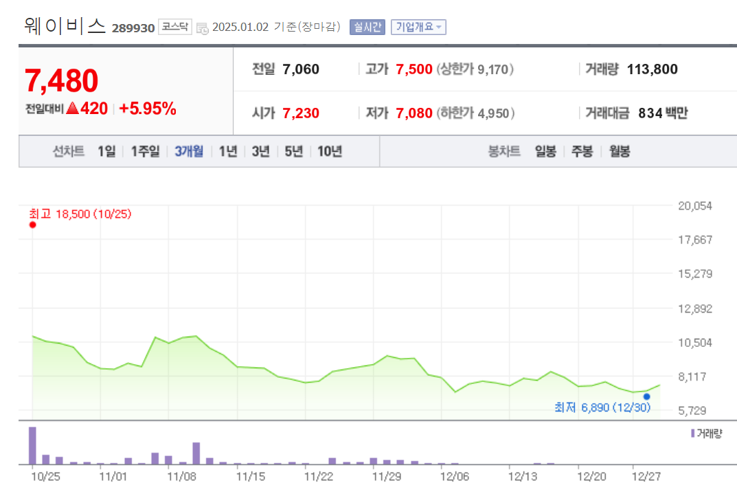 웨이비스 상장일 2024년 10월 25일