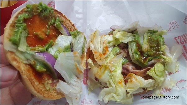 그리고 지인 중에는 돼지고기 패티가 싫어서 맥스파이시 상하이 버거만을 고집하는 사람도 있다